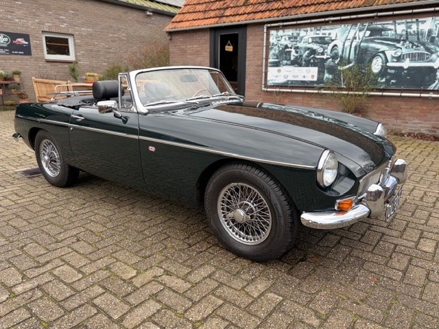 Full restored , stunning 1969 MGB with overdrive in dark British Green. This perfectly driving classic is the ultimate car for someone who enjoys pure driving at a fair price. Where else can you find such a hard and solid example for this price? This sublime car has been fully restored in 2017 and 2018, and it was done correctly by a classic car company. The paintwork is truly beautiful, the seams are all incredibly good, and the car is completely rust-free. The engine and overdrive gearbox have also been completely overhauled in the past, meaning the mechanicals of this MG are in impeccable condition. The whole restauration is documenten with pictures and invoices. The amount that's spend on this one, the best money can buy. The car is equipped with an oil cooler and an extra Kenlowe cooling fan. The car is in excellent overall condition and has been meticulously maintained over the years by two British classic car specialists in the south of the Netherlands. Everything works perfectly as it should. The engine runs perfectly, and the overdrive gearbox shifts like new. The car is fitted with Dunlop wire wheels in perfect condition. A wooden, original Moto-Lita steering wheel perfectly complements this sporty car. The interior is very neat and fresh, with beautiful, almost new carpeting and attractive black leather upholstery. The car is equipped with a vinyl, like new soft top and a vinyl hood/tonneacover. This MG is an exceptionally neat and solid car, ready to enjoy. This MG is the ultimate classic for anyone who enjoys open-top driving.