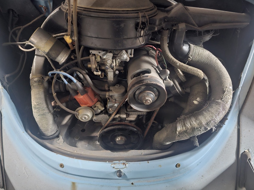 De auto staat nog grotendeels in originele staat en is compleet, inclusief motor. Ideaal als restauratieproject of om weer rijdend te maken. De Kever heeft de karakteristieke lichtblauwe kleur en originele velgen met wieldoppen.