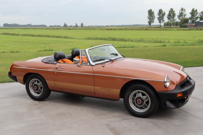 MG B Roadster Limited Edition 1981 - Eén van slechts 420 gebouwde exemplaren (allen voor de Britse markt en RHD) - Volledige historie bekend: vanaf nieuw in familiebezit - Slechts 52.416 mijlen gereden - Overdrive - Nederlandse registratiepapieren aanwezig uit 1988 - Comfortabel interieur met verwarming, middenarmsteun en lederen stuurwiel - Zeer originele conditie, eerste lak! - Technisch goed onderhouden - APK tot 6 februari 2027 HISTORIE Uniek in Nederland: deze MG B Roadster Limited Edition, waarvan slechts 420 exemplaren gebouwd zijn, enkel voor de Britse markt en dus rechts-gestuurd. Het betreft de laatste serie van de MG B die ooit gebouwd is, toen de productie van de MG B eigenlijk al gestopt was. Destijds werd uit geïnteresseerden geloot om eigenaar van een Limited Edition te kunnen worden. De huidige eigenaar van deze auto had zich ingeschreven op een GT (coupé) waar 580 exemplaren van gebouwd werden, maar had geen geluk. Zijn in Engeland wonende broer had meer geluk bij de inschrijving op een roadster en werd eigenaar van dit exemplaar. Na 4 jaar van de auto te hebben genoten is de auto over gegaan naar de huidige eigenaar: een MG verzamelaar in Nederland met al decennia meerdere MG's in zijn bezit. De auto is in 1988 op Nederlands kenteken geregistreerd en is altijd gekoesterd en goed onderhouden. De auto is vooral gebruikt bij toerritten, waardoor de mijlenstand met 52.416 beperkt is gebleven (84.355 km). In tegenstelling tot veel andere exemplaren, is dit exemplaar in zeer originele conditie behouden. Doordat het een laat gebouwd exemplaar is, wordt het als velen beschouwd als de fijnst rijdende MG B. EXTERIEUR Alle 420 gebouwde roadsters zijn origineel uitgevoerd in brons metallic lakwerk met met gouden striping aan de zijkant en oranje stoelbekleding. Een fraaie en retro kleurencombinatie. Dit exemplaar is schade- en roestvrij en bevindt zich zelfs nog in de eerste lak. De rubbers, verlichting en het chroomwerk verkeert in een goede staat. De algehele optische staat is goed met slechts minimale gebruikerssporen. Het het Linker achter scherm heeft aan de onderste rand iets roestvorming, deze is net als de hele onderkant in een beschermlaag gezet (geconserveerd) Kenmerkend voor de latere B modellen zijn de voorspoiler en de populaire 4-spaaks lichtmetalen velgen, die overigens ook nog in goede staat verkeren. Ook de softtop verkeert in goede staat zonder scheuren of beschadigingen, en het sluitwerk functioneert goed. INTERIEUR Een opvallend interieur door de oranje stoelbekleding met bruine strepen, zoals origineel geleverd. Ook het interieur bevindt zich in een originele en goede staat. Dankzij het bouwjaar is hij van comfortabele gemakken voorzien, zoals een middenarmsteun, een stuurwiel dat met leder bekleed is, verwarming en een Pioneer radio/cassettespeler. De vele tellers in het dashboard zijn onder meer een olietemperatuurmeter en een klokje. De gesynchroniseerde 4-versnellingsbak beschikt over een een overdrive, die zorgt voor een prettige ''5e versnelling''. De kofferruimte biedt plaats aan het reservewiel. TECHNISCH Technisch is de MG goed onderhouden en hij start, rijdt en schakelt dan ook uitstekend. De banden rondom zijn zo goed als nieuw en de APK is geldig tot 6 februari 2027. Kortom: een zeer origineel exemplaar van een in Nederland unieke auto!