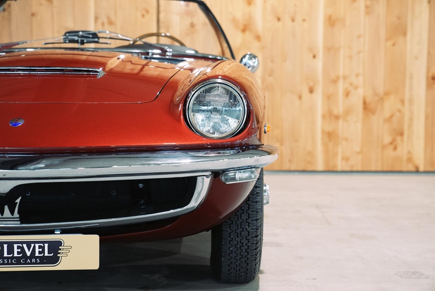 Een van de allereerste exemplaren uit deze serie. Zeer goed gedocumenteerd. Nieuw geleverd in Zwitserland, via Frankrijk uiteindelijk in Portugal terechtgekomen. Van de 3.5-versie zijn er slechts 17 geproduceerd. In 1964, under the warm Modenese sun, the first Maserati 3.5 Mistral Spider rolled out of the factory. Its sleek lines, penned by Pietro Frua, caught the light in a way that made it seem alive—low, elegant, and purposeful. The world was changing fast: jet travel was becoming accessible, music was growing louder, and Italian design was at its zenith. The Mistral Spider was Maserati’s answer to that new world—a grand tourer with soul. Beneath its long bonnet lay a 3.5-liter straight-six derived from Maserati’s racing pedigree, the same bloodline that had once carried Juan Manuel Fangio to victory. Only a handful would ever be built—around 125, each hand-finished, each subtly unique. Gianni Bellini, a wealthy textile merchant from Milan, was among the first to place an order. For him, it wasn’t about status but freedom. That summer, he drove the Mistral Spider from the cobblestone streets of his city to the lavender fields of Provence, the top down, the air alive with promise. Wherever he went, the car turned heads—not through brashness, but by its understated mastery.