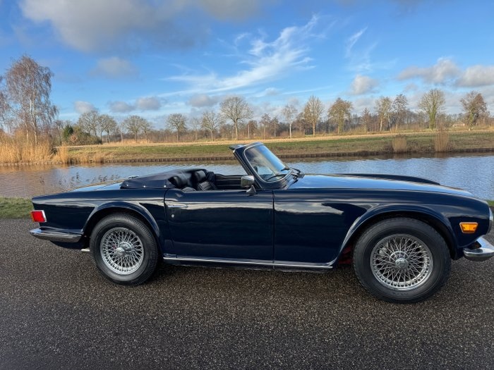 Unieke Triumph TR6 Roadster uit 1974 aangeboden. Deze Triumph TR6 is uitgerust met Overdrive, een zeer krachtige 122 pk 6-cilinder motor met 3 Webers en met een roestvrijstalen dubbel uitlaatsysteem, Royal blue lakwerk en bevindt zich in goede gebruikte staat. Voorzien van 4 chromen spaakvelgen en goede banden. Deze geweldige TR6 is werkelijk een beleving om in te rijden. heeft chromen voor en achterbumpers, chromen tex spiegels en goede rubbers. het lakwerk is in goede staat met gebruikersporen (oudere restauratie) en geleverd in Royal blue. Deze kleurencombinatie is echt prachtig! deze donker blauwe lak gecombineerd met chromen details en zwart lederen sportstoelen. Carrosserie & Lakwerk: De TR6 heeft jaren in een garage opgeslagen gestaan, is door ons volledig nagekeken, Deze Triumph TR6 heeft nette originele chromen spaak velgen, chromen details, goed hang- en sluitwerk. Originele Lucas koplampen, roestvrijstalen dubbel uitlaatsysteem met een prachtig diep geluid en een Monza brandstofdop. De soft-top is perfect en vervangen door een Mohair type in donker blauw. Ook is er een softtop cover aanwezig! De bodem is solide met rood ge-poedercoat chassis. Er is een nieuwe chromen achterbumper gemonteerd! Interieur: Het interieur beschikt over twee originele lederen stoelen met hoofdsteun, een noten dashboard met originele Smiths tellers, overdrive aan de pookknop, lederen handrem-hoes. bestuurder stoel heeft een kleine beschadiging in de wang rechts. Inclusief originele zwarte tapijtset en nette zwarte deurkaarten. Prachtig houten stuurwiel. Interieur en exterieur beide in een oude gerestaureerde staat, enige (bijgewerkte) plekjes en beschadigingen aanwezig. Techniek: De 3 dubbele weber uitvoering is afgesteld en fantastisch. het vermogen gaat hiermee van de standaard 100 naar ruim 122PK een beleving om te rijden en een echte Britse sportwagen. Originele 2498cc 6-cilinder motor +/- 122 pk, perfecte handgeschakelde transmissie met 4 versnellingen en overdrive en chromen kleppendeksel. De Techniek is nagekeken in onze werkplaats en heeft een complete onderhoudsbeurt gehad. 3 weber carburateurs 4 chromen spaakwielen Olie koeler Conversie set achterschokbrekers Teneau cover Electronische Lumenition ontsteking Nieuwe rembekrachtiger Nieuwe rempomp Nieuwe remklauwen en leidingen Voorraam met donker blauwe schaduwband Overdrive Dubbele rvs sportuitlaat Nieuwe RVS achterbumper! Details: Deze TR6 is voor de echte 'petrol head', een zeer nette Engelse sportwagen met een krachtige 2.5 liter motor en prachtige kleuren (Royal Blue) lakwerk in gebruikte staat. Oorspronkelijk komt deze TR6 uit Duitsland, waarna hij in Nederland is geregistreerd. De auto is altijd goed onderhouden en gestald in een verwarmde garage. Een prachtige kans voor de liefhebber met weinig moeite weer in topstaat te maken. U bent van harte welkom deze Triumph te komen bekijken en een uitgebreide proefrit te maken voor u gaat bieden! neem hiervoor contact op met Catawiki inclusief: Export documenten Enkele workshop manuals Oudere taxatierapporten Restauratie fotos Transport: Wij bieden verschillen transport oplossingen door heel Europa en daarbuiten! heeft u interesse in een transport of prijsopgave horen wij dat graag, wij vragen dan een prijs op bij een van onze transport partners. neem hiervoor contact op met Catawiki. Bieden: Wij raden kopers altijd aan de wagen alvorens te bieden te bezichtigen en een proefrit te maken, zet en drukfouten voorbehouden. Wij maken graag aanvullende fotos of een korte video indien u hierom verzoekt. Locatie: De TR6 staat in Rogat, Nederland (1,5 uur rijden van Amsterdam/Schiphol)