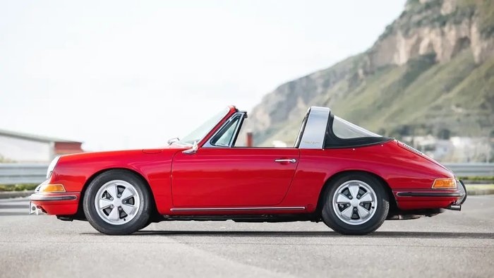 Rara Porsche 911 S Targa Softwindow Serie 0 uit 1967, een van de eerste geproduceerd met de uitrusting "Targa" die aanvankelijk de achterruit in vinyl hadden, daarom aangeduid als "Softwindow". In de voertuigen van serie 0 waren de chassisnummers van de coupé geïdentificeerd met de eerste cijfers 300 en de Targa-modellen met de eerste cijfers 500. Het chassisnummer van deze auto maakt deel uit van de batch van voertuigen van de serie "500", immers het chassisnummer is 500691. Specifiek zijn er 718 auto's geproduceerd met deze uitrusting waarvan volgens de gegevens van de fabrikant slechts 246 in de meest performante S-versie. Het gaat dus om een zeer zeldzaam model. De chassisnummers, de versnellingsbak en de motor komen overeen met de originele waarden. Gebouwd in de eerste helft van 1967, met de volgende opties: lichtblauwe ramen (getint glas), radio met antenne, luidspreker, mistlampen, Webasto-verwarming, gereedschapskist. De fabricageafwerking werd door de fabriek uitgevoerd in Polo Red met een zwarte kunstlederinrichting en de fabriek leverde gestroomlijnde Fuchs gietwielen van 4,5 inch, geproduceerd in deze maat alleen voor dit jaartal-model en daardoor zeer zeldzaam. De reservewiel is van staal en heeft, zoals op de foto's te zien is, het fabricatiedatum van 1967! De auto heeft de bijbehorende nummers en is oorspronkelijk afgeleverd in Cupertino, Californië (VS). Het klimaat van deze locatie heeft toegelaten dat de staat van bewaring van de auto uitstekend was. Deze auto is in 1998 gekocht door de ondergetekende. De auto verkeerde in een goede staat van bewaring, zonder doorslijtende roest en was regelmatig rijdend. Er is een zorgvuldige conservatieve restauratie uitgevoerd, met als doel zo veel mogelijk originele componenten te behouden met de hoogste vakmanschap en aandacht voor detail. De auto is uit elkaar gehaald en uitgebreid gefotografeerd. De oorspronkelijke kleur, Polo Red, is aangebracht met de juiste Glasurit-lak. Wurth bijenwasolie is toegepast op de holle delen van de auto voor extra roestbescherming. Het interieur is op de nodige plaatsen opnieuw bekleed. De motor is uit elkaar gehaald en intern gereviseerd volgens de originele Porsche-specificaties. Ook de carburateurs zijn volledig gereviseerd. Warmtewisselaars zijn geïnstalleerd samen met een nieuwe uitlaatsilencer. De versnellingsbak is uit elkaar gehaald en intern gereviseerd volgens de originele Porsche-specificaties. General wear parts zijn vervangen, een professionele lakcorrectie uitgevoerd, uitgebreide details en andere kleine aanvullingen om dit buitengewone voertuig naar een hoger niveau te tillen. Het is niet vaak dat zo'n gewilde auto op de markt komt in zo'n buitengewone staat. Het is een zeer betrouwbare auto, de zescilinder motor bevindt zich in de meest performante versie (160 PK) voor dat specifieke jaartal-model, heeft een uitstekende koppel en start direct. De auto komt uit de VS, is in Italië keurig geïmporteerd met betaling van douanekosten en in Italië geregistreerd. Technisch kan de auto_geteeld worden bij het Centro Porsche in Napels. Tevens wordt het Certificaat van Oorsprong uitgegeven door Porsche Italia en het Kardex van de auto met alle originele specificaties gepubliceerd. Chassis nr.: 500691S Nr motor: 962142 Kilometerteller: 460 mijlen (na restauratie) Eigenaren: 2 Cilinderinhoud: 1991 - pk 160 Buitenkleur: Polo Red code 6602 Interieurkleur: Zwart Optionele voorzieningen: Getint glas Webasto-verwarming Radio met luidspreker Gereedschapskist Mistlampen DOCUMENTATIE Bevat Italiaanse documenten. Voertuig te zien in Napels, Italië.