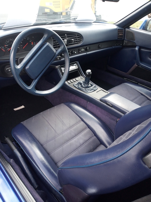 Deze Porsche 944 S2 bevindt zich in een zeldzame en bijzonder geslaagde kleurcombinatie, zowel exterieur als interieur. blauw metalic en interieur met porsche logo en motief in de zetelstof