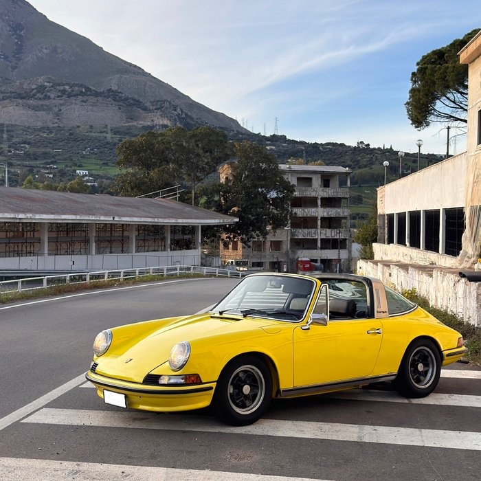 Porsche 911 2.4 T Targa (1973), volledig gerestaureerd in al zijn onderdelen: Carrosserie volledig gerestaureerd tot nul roest (zonder roest), motor, versnellingsbak en carburateurs volledig gereviseerd, volledige revisie van het elektrische systeem, interieur volledig gerestaureerd, mechaniek en vering volledig herzien, het originele dak gereviseerd en met binnen- en buitenbekleding als nieuw. Nitro-lakwerk handmatig gepolijst tot glans, zonder eindlaag. Oorspronkelijke kleur Light Yellow Motor en versnellingsbak volledig geopend en gereviseerd (ongeveer 2500 km gereden). Volledige revisie van de carburateurs. De restauratie duurde circa 7 jaar (aankoop eind 2018 en voltooid juni 2025), de carrosserie volledig gerestaureerd (controleer de bijgevoegde foto's) en tot op nul roest teruggebracht, er zijn geen sporen van roest aanwezig op geen enkel deel van de carrosserie. Een Duitse eigenaar (de auto is in Duitsland geregistreerd en heeft 2 Italiaanse eigenaren). Het “matching number” wordt bepaald door het chassisnummer en het motornummer, niet altijd opgenomen op de Porsche-certificaten (bijgevoegd bij de foto's), omdat in die jaren (1960/1970) deze nummers niet altijd in hun interne registers werden vastgelegd. Alle fotografische documentatie van de totale restauratie en alle fiscale documenten van de uitgevoerde werken gedurende de 8 jaar van de restauratie zijn beschikbaar. Voertuig in uitstekende algemene conditie. Toegevoegd accessoire naast die op het Porsche-certificaat: - Voor- en achterstabilisatiestangen (serie S); - Staal onderdeurdorpels (serie S); - Origineel lederen stuurwiel van 38 cm (serie RS); - Duurzaam/duizend dikker tapijt (serie S); - Magnesium remklauwen voor (serie S); - Originele Recaro-stoelen met hoofdsteun en centraal fluweel; - Complete originele gereedschapsdos uit die periode; - Blaupunkt autoradio in vintage-stijl met handsfree, Bluetooth en DAB. Eventuele proef bij officiële Porsche-dealers. DOCUMENTATIE Avering van Italiaanse documenten, gebruiksaanwijzing, certificaat en originele heritage van Porsche. Voertuig te zien in Palermo, Italië.