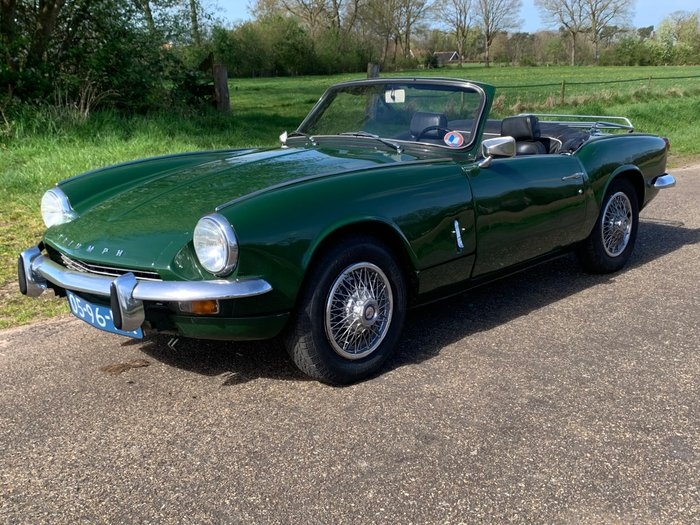 Deze erg leuke en heerlijke rijdende Triumph Spitfire 1300 MK3 is van bouwjaar 1969 is een prachtige eyecatcher ! Het is een auto die origineel nieuw in Nederland is geleverd, heeft dus ook nog het originele Nederlandse kenteken. Tevens is de kilometerstand volledig aantoonbaar, zie de foto's. Vanwege zijn leeftijd is hij APK vrijgesteld, en ook wegenbelasting vrijgesteld. Documenten: De auto heeft een Nederlandse registratie, indien gewenst kan (tegen meerprijs van 50 euro) de auto worden geleverd met EU-export document zodat een buitenlandse koper de Porsche eenvoudig kan laten registreren. Een COC / CVO verklaring is tegen meerprijs van 70 euro ook mogelijk. Carrosserie: Zeer geringe gebruikerssporen zijn aanwezig, logisch want hij is inmiddels 56 jaar oud. Zie de foto's. Hij heeft een oudere soft top, die handbediend is, (gemakkelijk te openen en sluiten), in redelijke toestand, het gaat hier echt om een vertroetelde mooi-weer auto, waarbij het dak feitelijk amper gebruikt is en opgevouwen heeft gezeten onder de afdek tonneau. Er zijn spaakwieldoppen op de stalen velgen gemonteerd. De onderzijde van de auto is in erg goede staat. De lak op de carrosserie ziet er heel erg netjes uit, evenals de chroom delen. Samengevat een erg nette auto. Technisch: De auto start direct, heeft onlangs een nieuwe accu gekregen. De banden zijn in goede toestand, er zijn diverse onderdelen vervangen, zoals de stroomverdeler, de bobine, bougies en bougiekabels. De meters op het dashboard werken prima. Interieur: Het interieur is netjes, met enige reparaties en gebruikerssporen, er zijn stoelen van de MK4 gemonteerd, evenals veiligheidsgordels. Dat was in 1969 nog niet verplicht, maar wel zo veilig. Zie de fotos. Er wordt een picknickmand meegeleverd, die helemaal vol is met documentatie, brochures, enzovoort. Transport: De auto staat in Hengevelde, Nederland en kan hier vanzelfsprekend worden opgehaald. De auto kan tegen meerprijs van 150 euro binnen Nederland worden bezorgd (excl. De Waddeneilanden) Voor de buitenlandse bieders: Bezorging/transport: Verkoper kan de auto relatief goedkoop in de hele EU laten bezorgen door een professionele transporteur.