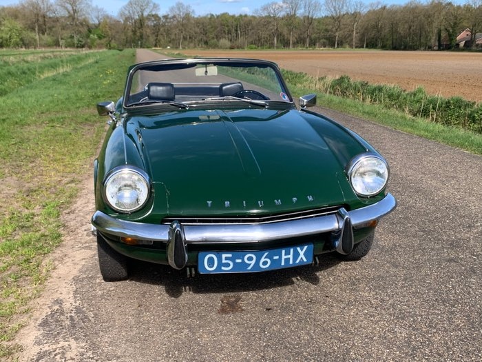 Deze erg leuke en heerlijke rijdende Triumph Spitfire 1300 MK3 is van bouwjaar 1969 is een prachtige eyecatcher ! Het is een auto die origineel nieuw in Nederland is geleverd, heeft dus ook nog het originele Nederlandse kenteken. Tevens is de kilometerstand volledig aantoonbaar, zie de foto's. Vanwege zijn leeftijd is hij APK vrijgesteld, en ook wegenbelasting vrijgesteld. Documenten: De auto heeft een Nederlandse registratie, indien gewenst kan (tegen meerprijs van 50 euro) de auto worden geleverd met EU-export document zodat een buitenlandse koper de Porsche eenvoudig kan laten registreren. Een COC / CVO verklaring is tegen meerprijs van 70 euro ook mogelijk. Carrosserie: Zeer geringe gebruikerssporen zijn aanwezig, logisch want hij is inmiddels 56 jaar oud. Zie de foto's. Hij heeft een oudere soft top, die handbediend is, (gemakkelijk te openen en sluiten), in redelijke toestand, het gaat hier echt om een vertroetelde mooi-weer auto, waarbij het dak feitelijk amper gebruikt is en opgevouwen heeft gezeten onder de afdek tonneau. Er zijn spaakwieldoppen op de stalen velgen gemonteerd. De onderzijde van de auto is in erg goede staat. De lak op de carrosserie ziet er heel erg netjes uit, evenals de chroom delen. Samengevat een erg nette auto. Technisch: De auto start direct, heeft onlangs een nieuwe accu gekregen. De banden zijn in goede toestand, er zijn diverse onderdelen vervangen, zoals de stroomverdeler, de bobine, bougies en bougiekabels. De meters op het dashboard werken prima. Interieur: Het interieur is netjes, met enige reparaties en gebruikerssporen, er zijn stoelen van de MK4 gemonteerd, evenals veiligheidsgordels. Dat was in 1969 nog niet verplicht, maar wel zo veilig. Zie de fotos. Er wordt een picknickmand meegeleverd, die helemaal vol is met documentatie, brochures, enzovoort. Transport: De auto staat in Hengevelde, Nederland en kan hier vanzelfsprekend worden opgehaald. De auto kan tegen meerprijs van 150 euro binnen Nederland worden bezorgd (excl. De Waddeneilanden) Voor de buitenlandse bieders: Bezorging/transport: Verkoper kan de auto relatief goedkoop in de hele EU laten bezorgen door een professionele transporteur.