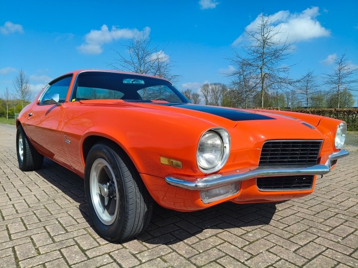 1970 CHEVROLET CAMARO 355 V8 Automatic ALGEMEEN: Deze Camaro bevindt zich in zeer goede staat en is uitgevoerd met de geliefde 350 V8 in combinatie met de 350 automaat en Console shifter. Een echte klassieker die iedere liefhebber of verzamelaar zal aanspreken, het is namelijk het eerste bouwjaar met het shark nose front. CARROSSERIE & LAKWERK: De carrosserie is strak en heeft de juiste passingen rondom. Het lakwerk betreft een goede Eu paint met hier en daar lichte imperfecties, maar geheel passend bij een eerlijke klassieker van deze leeftijd. TECHNISCH: Onder de motorkap ligt een 350 welke is geboord met 0..3 en nu een zeer krachtige 355 V8 is, gekoppeld aan de soepele 350 automatische transmissie. Er is een vermogens uitdraai bij de documenten en deze geeft ruim 430 pk aan. De auto is ook voorzin van een LSD diff, de zgn sper. Deze aandrijflijn zorgt voor een betrouwbare en plezierige rijervaring, precies zoals een sportieve maar ook klassieke Camaro hoort te zijn. De auto is voorzien van disc brakes, waardoor hij niet alleen krachtig accelereert, maar ook uitstekend tot stilstand komt. Het uitlaatsysteem is uitgerust met een double exhaust, wat de auto een diepe en sportieve V8-sound geeft. Al met al verkeert de techniek in uitstekende staat en is de Camaro direct klaar om mee te rijden en van te genieten. INTERIEUR: Het interieur is uitgevoerd in de originele en stijlvolle zwarte bucket seats. Zowel de stoelen, deurpanelen als vloerbekleding verkeren in een prima, gebruikte conditie. Het geheel is comfortabel, fris en passend bij de klassieke uitstraling van deze Camaro. DOCUMENTEN: Wordt geleverd met Zweeds kenteken / EU-papieren. Op verzoek verzorgen wij export papieren voor u. AFHALING: Af te halen in overleg in Appingedam, transport kan eventueel geregeld worden. OVERIGE INFORMATIE: De auto staat op Torque trust achtige velgen, echt old school ,et mooie Spinners die goed in het tijdsbeeld passen en om de juiste klassieke look compleet maken. Een unieke kans om een echte sharknose Chevrolet Camaro V8 te bemachtigen in goede staat met een hele snelle motor, uitgevoerd in de geliefde kleur Hugger orange met zwart interieur. Een icoon dat niet alleen een solide investering is, maar ook garant staat voor puur rijplezier!