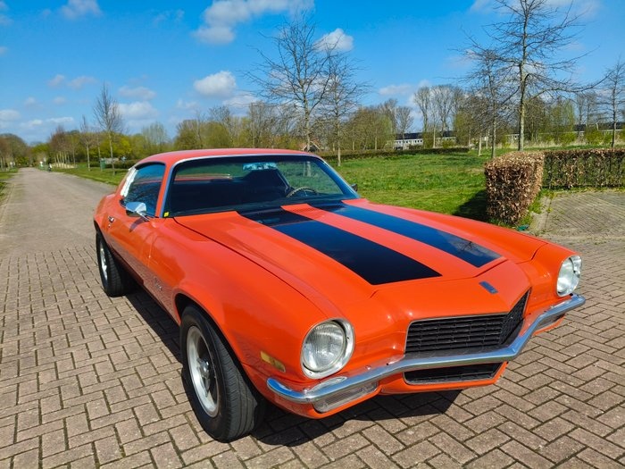 1970 CHEVROLET CAMARO 355 V8 Automatic ALGEMEEN: Deze Camaro bevindt zich in zeer goede staat en is uitgevoerd met de geliefde 350 V8 in combinatie met de 350 automaat en Console shifter. Een echte klassieker die iedere liefhebber of verzamelaar zal aanspreken, het is namelijk het eerste bouwjaar met het shark nose front. CARROSSERIE & LAKWERK: De carrosserie is strak en heeft de juiste passingen rondom. Het lakwerk betreft een goede Eu paint met hier en daar lichte imperfecties, maar geheel passend bij een eerlijke klassieker van deze leeftijd. TECHNISCH: Onder de motorkap ligt een 350 welke is geboord met 0..3 en nu een zeer krachtige 355 V8 is, gekoppeld aan de soepele 350 automatische transmissie. Er is een vermogens uitdraai bij de documenten en deze geeft ruim 430 pk aan. De auto is ook voorzin van een LSD diff, de zgn sper. Deze aandrijflijn zorgt voor een betrouwbare en plezierige rijervaring, precies zoals een sportieve maar ook klassieke Camaro hoort te zijn. De auto is voorzien van disc brakes, waardoor hij niet alleen krachtig accelereert, maar ook uitstekend tot stilstand komt. Het uitlaatsysteem is uitgerust met een double exhaust, wat de auto een diepe en sportieve V8-sound geeft. Al met al verkeert de techniek in uitstekende staat en is de Camaro direct klaar om mee te rijden en van te genieten. INTERIEUR: Het interieur is uitgevoerd in de originele en stijlvolle zwarte bucket seats. Zowel de stoelen, deurpanelen als vloerbekleding verkeren in een prima, gebruikte conditie. Het geheel is comfortabel, fris en passend bij de klassieke uitstraling van deze Camaro. DOCUMENTEN: Wordt geleverd met Zweeds kenteken / EU-papieren. Op verzoek verzorgen wij export papieren voor u. AFHALING: Af te halen in overleg in Appingedam, transport kan eventueel geregeld worden. OVERIGE INFORMATIE: De auto staat op Torque trust achtige velgen, echt old school ,et mooie Spinners die goed in het tijdsbeeld passen en om de juiste klassieke look compleet maken. Een unieke kans om een echte sharknose Chevrolet Camaro V8 te bemachtigen in goede staat met een hele snelle motor, uitgevoerd in de geliefde kleur Hugger orange met zwart interieur. Een icoon dat niet alleen een solide investering is, maar ook garant staat voor puur rijplezier!