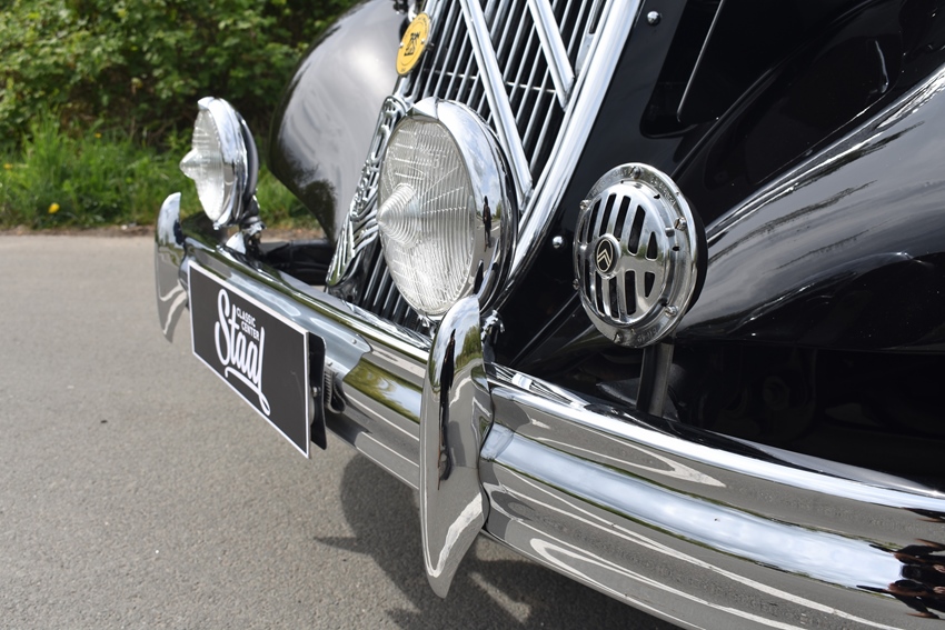 Een indrukwekkend mooie Traction Avant in schitterende staat. Dit type staat bekend als wieltje dankzij het karakteristieke reservewiel achterop