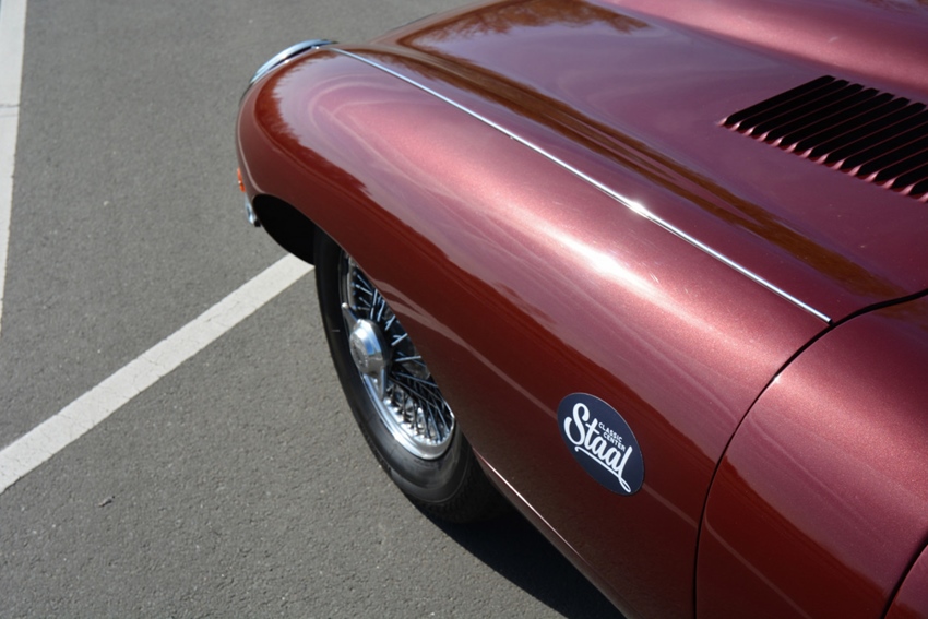 De tijdloze klassieker is uitgevoerd in het stijlvolle Jaguar Maroon Red metallic, een kleur die perfect past bij het elegante lijnenspel van de E-Type. De lak verkeert in nette staat en wordt gecompleteerd door fraaie chromen accenten en klassieke spaakvelgen. Uiteraard zijn er lichte gebruikerssporen aanwezig, passend bij de leeftijd van de auto.