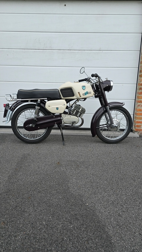 De Sachs V5 Turismo is een klassieker uit de jaren '60, gekend om zijn degelijkheid, eenvoud en tijdloze uitstraling. Deze Duitse brommer combineert een robuust ontwerp met soepele prestaties van de betrouwbare 50cc tweetaktmotor. Dankzij het originele zadel, tank, spatborden en verlichting blijft de authentieke charme volledig behouden.