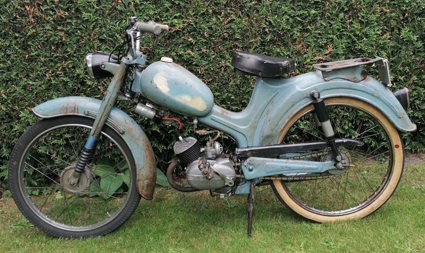 Leuke Demm utilitair model met 3 handversnellingen. Deze brommer is in orde, aantrappen en wegrijden. De brommer is volledig uit elkaar geweest. Roest weggehaald of gestopt, alles wat niet oké was is in orde gezet. Nieuwe onderdelen: ketting, banden, bobine, voorvorkrubbers, achterwiel is op vaste kogellagers met steekas omgebouwd. Deze bromfiets is helemaal in originele staat met een zeer mooi patina. Met geldige Belgische papieren (kenteken deel 1 en 2).