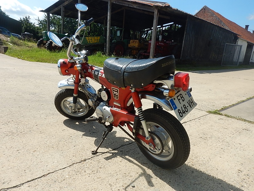 Introducing this 1973 Honda Dax ST70, a true classic in the minibike world. This particular model is completely original with only 8200 km on the clock. It's a 70cc bike that was newly imported to France, and comes with all the necessary French documents. The lovely patina on the body gives it an authentic vintage feel. Don't miss your chance to own a piece of minibike history with this Honda Dax ST70.