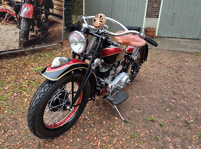 In bijna nieuwstaat gerestaureerd deze bijzondere 1942 Indian Scout 741 civiel uitvoering.