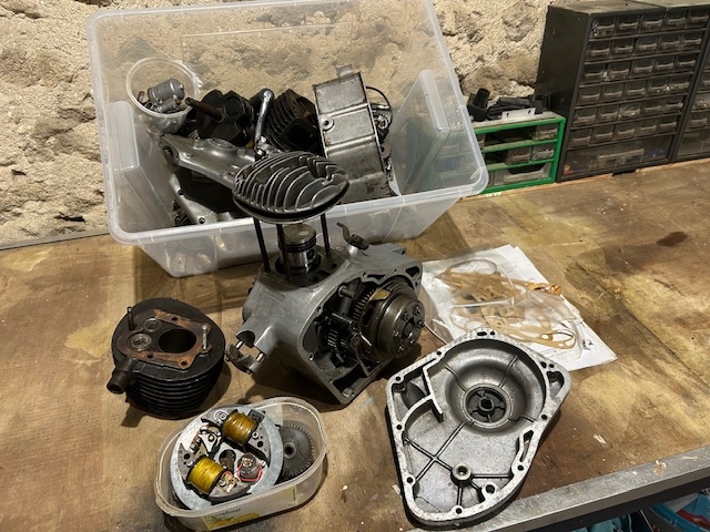 Motobecane AB1 100cc in onderdelen met gereviseerde krukas, nieuwe zuiger en gehoonde cilinder.