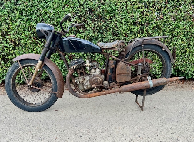 Belgische Gillet model Confort 400cc van 1934. Mooi winterproject om te restaureren. Voorvork is ooit gemoderniseerd met een telescoop vork zoals zoveel gebeurde na de oorlog.