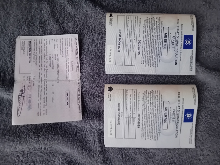 Te koop aangeboden in volledige originele staat(er staat nu een viper uitlaat op maar de originele is er bij).is in de HRC kleuren gelakt met gouden velgen.info 0476692149.