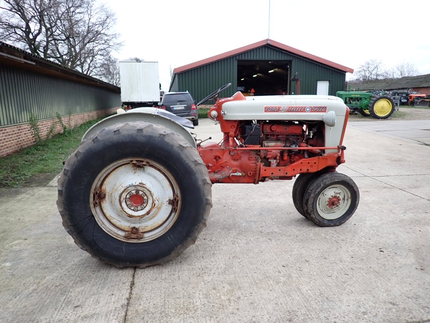 Fors sale is this 1959 Ford 971, the Select-O-speed from the 901 series tractors, in good running and driving condition. Powershift works well in both forward as reverse as can be seen in the video. Ford was way ahead of its time as they built the first full powershift tractor with 10 forward and 2 reverse speeds in 1959 at a moment its main competitors could only shift down half a gear. John Deere followed the Ford example in 1962 and International waited almost 25 years to have a full powershift tractor. This 1959 tractor would be a perfect addition for any tractor collection.