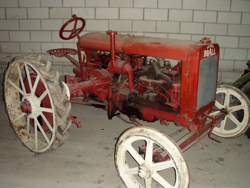 For sale is this ca 1930 Rumely Do-All. A rare find. The DoAll was developed as a tractor that could be converted into a motor-cultivator by dismounting the front axle and tilting the rear axle forward. The last picture is an example what it looks like converted into motor-cultivator. It has a Waukesha 2.8L 4-cyl gasoline engine that was tested at 21,6 Hp. The tractor is in running condition on original steel wheels covered with rubber on the back.