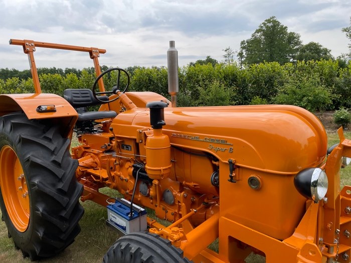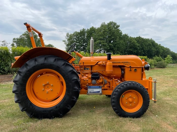 Prachtig en tevens een unieke kans om één van de zeldzaamste Porsche tractoren aan te schaffen. Deze uiterst zeldzame Porsche Diesel Super 309B industriële tractor. Uitstekend gerestaureerd exemplaar dat tot op de laatste moer is gedemonteerd en opnieuw is opgebouwd. Om van deze Porsche een uniek museumexemplaar in topstaat te maken, werd er een fortuin geïnvesteerd in de restauratie. De motor is geheel gereviseerd en loopt beter dan nieuw! Dit is een hogesnelheidstransmissie met een snelheid van 40 km/u. Nieuwe koppeling en drukplaat. Volledig gezandstraald en prachtig opnieuw gespoten in de originele kleur. 4 nieuwe banden. Nieuwe assen! En wat deze 309 nog zeldzamer maakt: Het is er één van de 25 met stuurbekrachtiging! Zeer uniek en zeldzaam. 5 hydraulische aansluitingen voor en achter voor het bedienen van eventuele aanbouwdelen. Het elektrische systeem is geheel nieuw, inclusief de verlichting. Originele rolbeugel met naamplaatje, tevens is de originele cabine met windscherm aanwezig. Overeenkomende nummers! Motor- en chassisnummer komen overeen. Compleet met Duitse papieren en oude brief. Technisch en optioneel compleet nieuw! Transport mogelijk wereldwijd. Kortom een ??unieke kans voor de liefhebber/verzamelaar