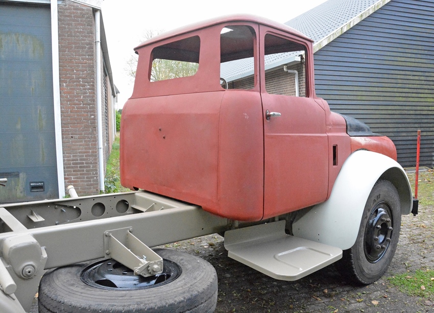 Gerestaureerd met veel fabrieksnieuwe onderdelen zoals tank, motorkap, zijbeplating, verlichting, trekpen etc. Cabine is hard en staat in de grondverf. Originele DAF koppelschotel