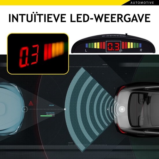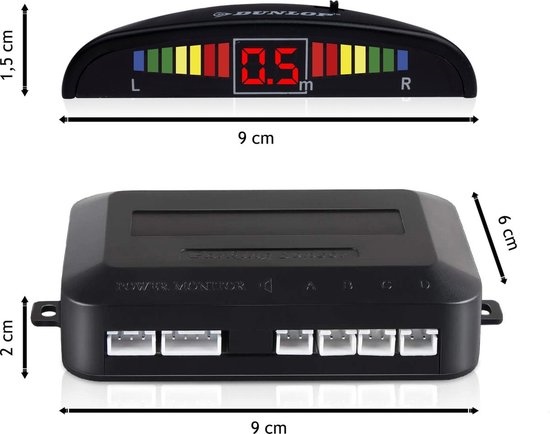 De ultieme parkeer hulp voor elk type auto. De set bestaat uit 4 sensoren en een led-scherm .