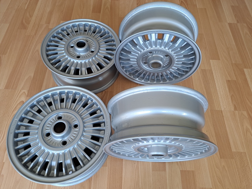 Velgen zijn behandeld, daarna niet gebruikt. Poederlak nieuw 3 lagen (primer, kleur en glans).